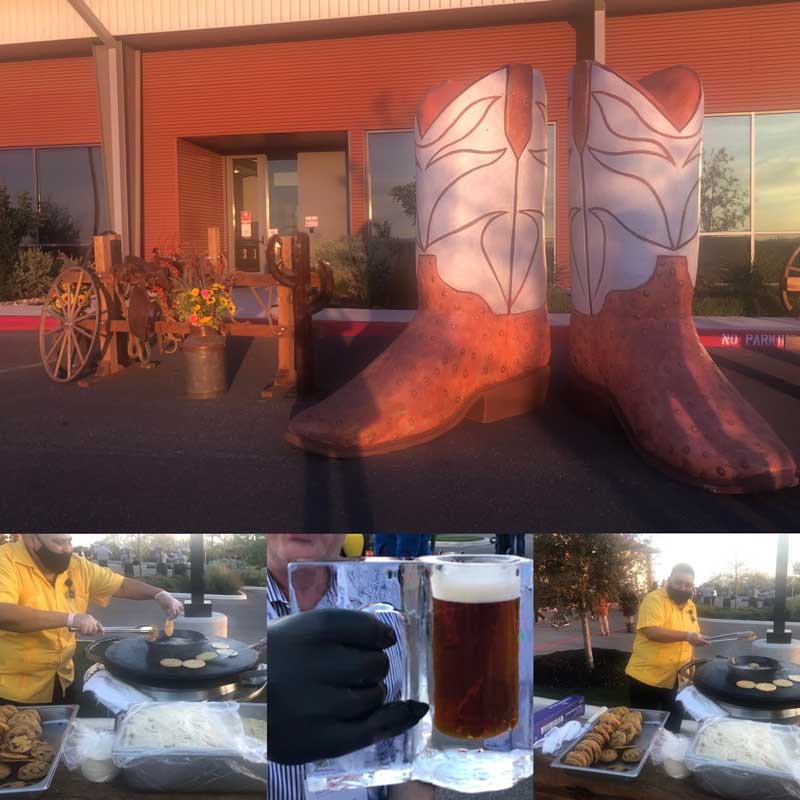 The RK Group is proud of their Texas heritage and wanted the visiting LCA members to enjoy a taste of the Lone Star State. They served up tomahawk ribeye tacos with made-in-the-minute tortillas, gorditas with toppings and venison chili, plus a new favorite – bacon wrapped quail with a jalapeno sauce! Their food, drinks and uniforms all displayed pride in their company and culture. They even paid homage to the state favorite beer – Shiner Bock. No ordinary beer steins for them though; they helped everyone really chill out with a mug made completely of ice. Of course they also had to provide you with a new kind of koozie; you had to wear a glove while indulging in this product that was so inventive! The beer can be enjoyed for awhile as the mug is actually quite durable and long lasting.