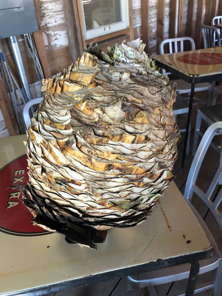 The production of sotol is small scale, labor intensive and sometimes uses a little help from burros. Workers harvest the heart (piña), roast them for several days in wood fired ovens and mash chop them to start a fermentation process that can last up to three weeks with an output of about one bottle per plant.